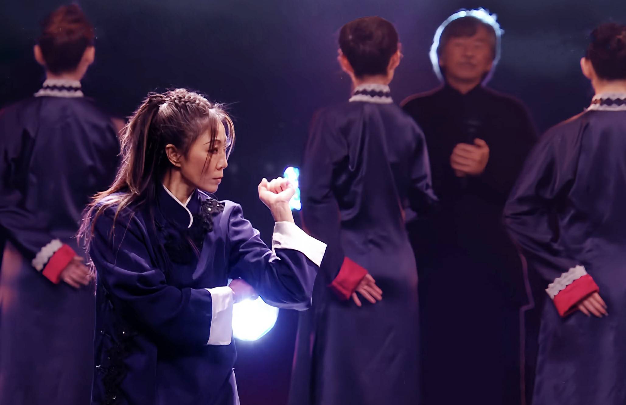 值得关注的是,作为影武堂特训营导师与资深动作指导,周小飞以专业功底赋予了节目独特的艺术张力。她将多年深耕的武术教学经验与舞台呈现相结合,既保留了八卦掌、通臂拳、八极拳和咏春拳的传统精髓,又通过现代化的编排让武术与音乐、光影完美融合,展现了传统技艺在当代舞台的创新表达。从《一代宗师》中的金楼三姐到《叶问4》的蒋云来,从荧幕侠女到舞台王者,再到培育动作人才的导师,周小飞始终以“匠人精神”深耕武术领域,此次跨年舞台正是她多年积淀的实力绽放。